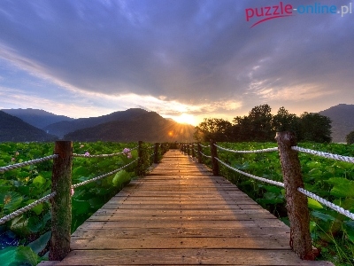 Puzzle Wschód Słońca, Góry, Kładka