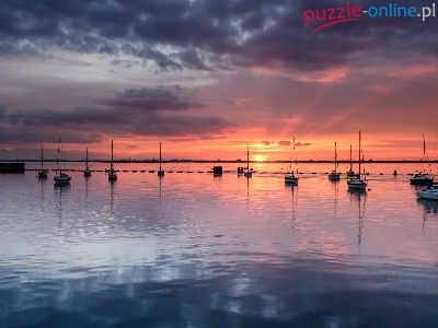 Puzzle Łodzie, Jezioro, Wschód Słońca