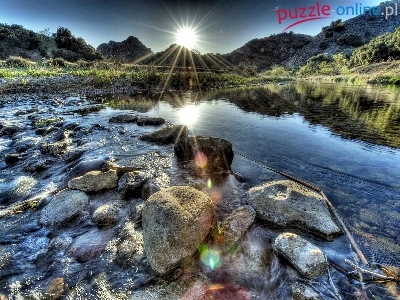 Puzzle Wschód, Rzeka, Kamienie, Słońca