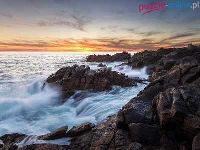 Puzzle Wschód słońca, Morze, Skały