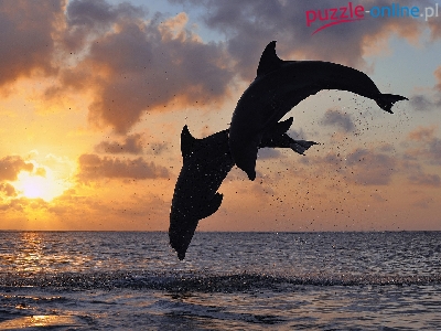 Wschód, Delfiny, Morze, Dwa, Skok, Słońca