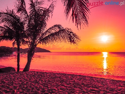 Puzzle Palmy, Wschód słońca, Morze, Plaża