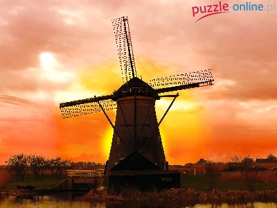 Puzzle Wschód Słońca, Wiatrak, Holandia