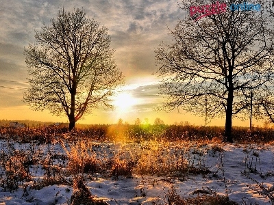 Wschód słońca, Zima, Drzewa