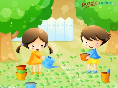 Puzzle Wspólna, Dzieci, Ogródek, Praca