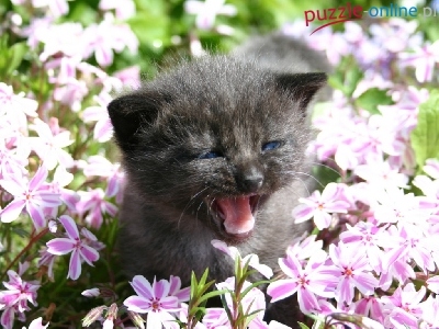 Puzzle Wśród, Czarny, Kotek, Kwiatów