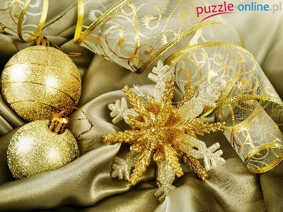 Wstążka, Święta, Złote, Bombki, Gwiazdka
