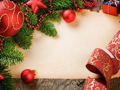 Wstążka, Prezent, Gwiazdki, Deski, Dekoracja, Koraliki, Boże Narodzenie, Bombki, Gałązki, Świąteczna, Czerwone, Kartka