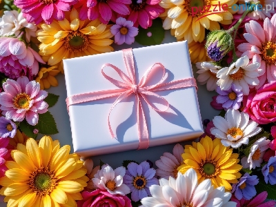 Kwiaty, Różowa, Prezent, Wstążka, Gerbery, Kolorowe