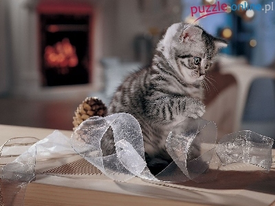 Puzzle Wstążka, Mały, Kotek, Zabawa