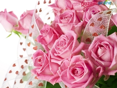 Puzzle Wstążka, Różowe, Róże, Liście