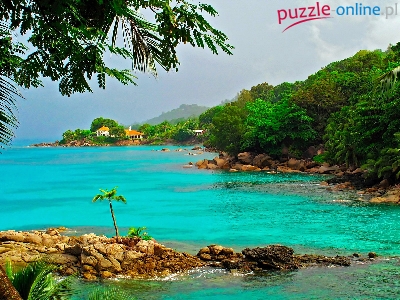 Wybrzeże, Dżungla, Morze, Głazy, Domy