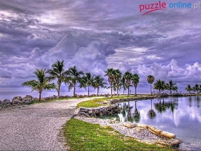Wybrzeże, Chmury, Droga, Morze, Palmy