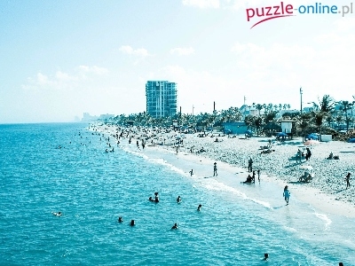Puzzle Wybrzeże, Plaża, Morze, Ludzie