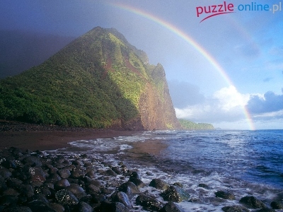 Puzzle Wybrzeże, Morze, Skała, Tęcza