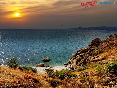 Puzzle Wybrzeże, Morze, Zachód Słońca