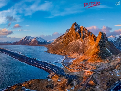 Niebo, Chmury, Zatoka, Góra, Eystrahorn, Morze, Islandia, Wybrzeże