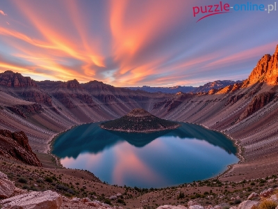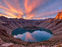 Niebo, Jezioro, Skały, Wysepka, AI, Kolorowe