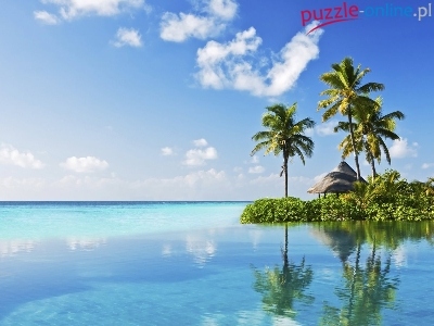 Puzzle Wysepka, Morze, Zielona, Palmy