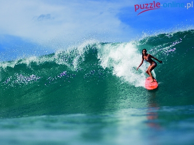 Puzzle Wysoka, Kobieta, Surfing, Fala