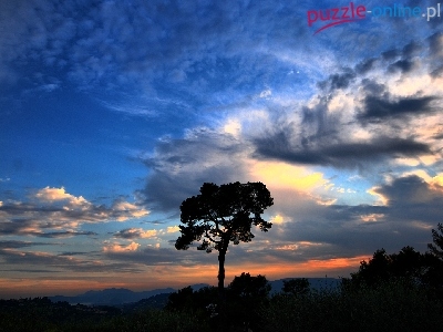 Puzzle Wysokie, Zachód, Słońca, Drzewo