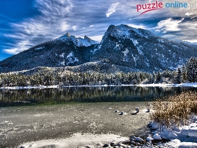 Śnieg, Jezioro, Góry, Wysokość, Las