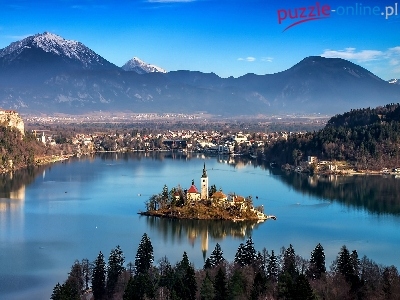 Wyspa, Słowenia, Góry, Jezioro, Bled