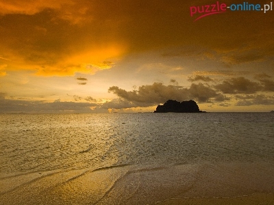 Wyspa, Słońce, Fale, Chmury, Promienie, Morze
