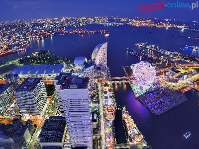 Zatoka Tokijska, Wyspa Honsiu, Z lotu ptaka, Japonia, Jokohama, Miasto nocą