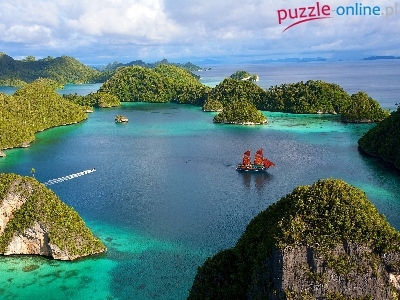 Puzzle Wyspy, Morze, Żaglówka, Indonezja