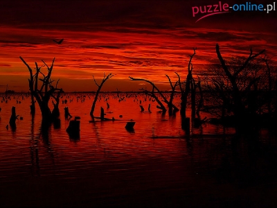 Wystające, Drzewa, Zachód Słońca, Jezioro, Suche