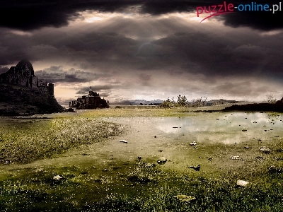 Łąka, Chmury, Zamki, Wzgórza, Czarne