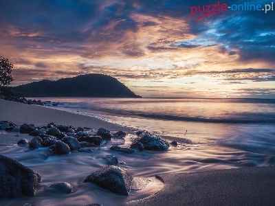 Gwadelupa, Kamienie, Wzgórza, Plaża de Grande Anse, Ameryka środkowa, Morze, Drzewa