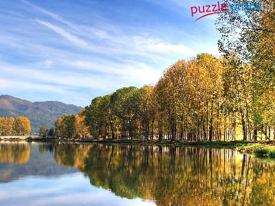 Puzzle Wzgórza, Jezioro, Drzewa, Niebo