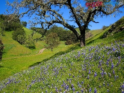 Wzgórza, Kwiaty, Drzewa, Droga