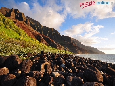 Wzgórza, Chmury, Morze, Kamienie, Niebo