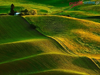 Puzzle Wzgórza, Zielone, Pofalowane, Pola