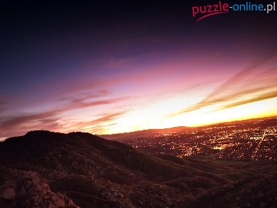 Puzzle Wzgórza, Zachód, Słońca, Miasteczko