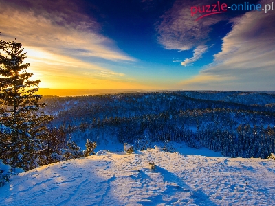 Puzzle Wzgórza, Zima, Zachód słońca