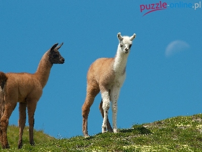 Puzzle Wzgórze, Dwie, Lamy, Trawa
