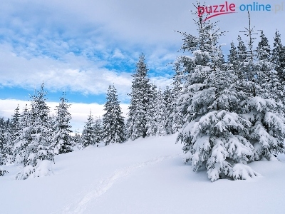 Puzzle Śnieg, Zima, Wzgórze, Świerki