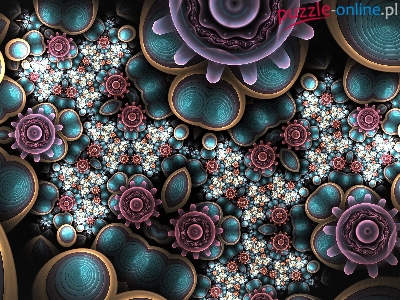Puzzle Wzory, Fraktal, Zielono-bordowe, Kwiaty