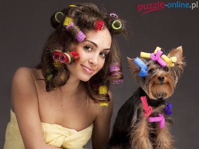 York, Wałki, Kobieta, Pies, Kolorowe