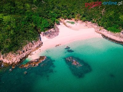 Z lotu ptaka, Wybrzeże, Lato, Plaża, Skały, Brzeg, Morze, Drzewa