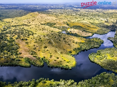Puzzle Drzewa, Rzeka, Wzgórza, Z lotu ptaka