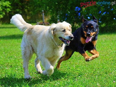 Puzzle Zabawa, Dwa, Pieski, Trawa