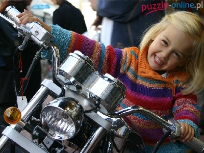 Zabawa, Humor, Dziewczynka, Uśmiech, Motocykl