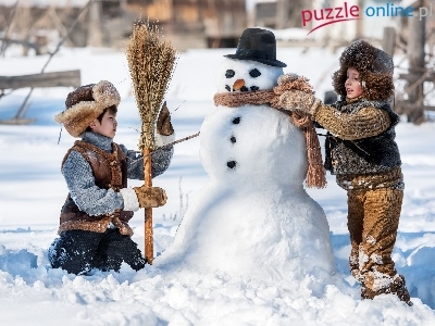 Puzzle Zabawa, Dzieci, Zima, Bałwan