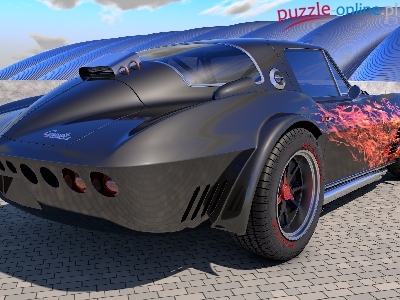Puzzle 1964, Zabytkowy, Chevrolet Corvette Grand Sport, Płomienie