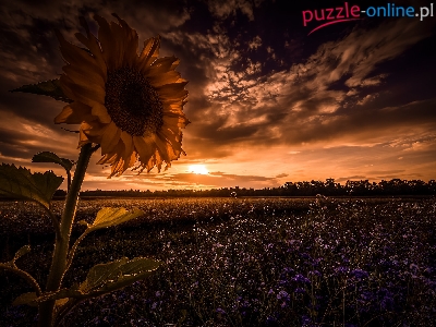 Puzzle Zachmurzone, Słonecznik, Pole, Niebo